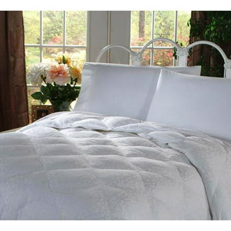 Southern Living Jacquard Scroll Comforter: Jacquard scroll designDiamond quilted with roped cording300-thread count cotton coverDown-alternative comforter with polyester fiber fillMachine washableAvailable in twin, full/queen and king sizesWhite color