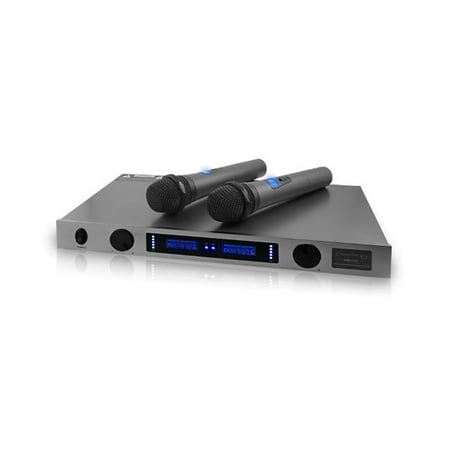 Technical Pros microphones are preferred by sound professionals and performers- The innovative technology that is used always produces a proper translation to any voice and to any audience- and the sturdy design will give you confidence that your show or conference will always be a success- These same two elements can be found in the Professional UHF Wireless Microphone System-Features- Dual signal UHF high band- Polar Pattern Dynamic Cardioid- Digital sound processing- Outputs Individual XLR outputs per channel, one 14 mixed output- Frequency stability 0-005- Modulation mode FM- Maximum deviation range 45kHz with limiting compressor- Silence circuit cuts static noise if mics are off or out of range- Auto mute circuit reduces popping noise- Dual adjustable gain controls- Frequency Response 40Hz-20kHz- Signal to noise ratio 101dB- Total harmonic distortion 0-5- Audio dynamic range 94dB- Service area 200 ft- Comes with two wireless handheld microphones- VU meter- LCD display with microphone frequency- Available in 5 different 2 mic sets allowing for 10 different mic frequencies in one location- Dimension - 19 x 8-5 x 1-75 in- Item Weight - 7-5 lbs- SKU: TCHPRO597