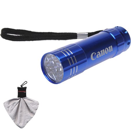 Canon 9 LED Push Button Flashlight (Blue) with Microfiber Cleaning Cloth for Rebel T2i, T3, T3i, T4i, EOS 60D, 7D, 5D Mark II III Digital SLR Camera