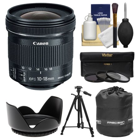 Related Product Canon EF-S 10-18mm f/4.5-5.6 IS STM Zoom Lens with Tripod + Hood + 3 Filters + Pouch + Kit for EOS 70D, 7D, Rebel T5, T5i, T6i, T6s, SL1 Camera