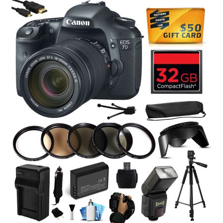 CHEAP Canon EOS 7D 18 MP CMOS Digital SLR Camera with 18-135mm f/3.5-5.6 IS UD Lens with 32GB Memory, Flash, Battery, Charger, Lens Hood, 5 PC Filters, Grip Strap, HDMI, Cleaning Kit, $50 Gift Card 3814B016 OFFER