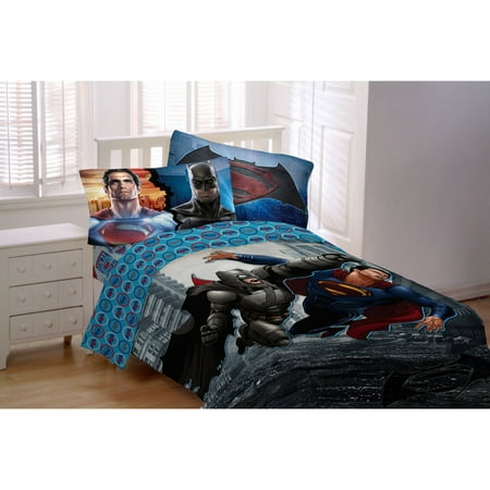Batman Vs Superman World's Finest Reversible Twin/Full Comforter: Comforter measures 72" W x 86" LPolyester comforter will fit either a twin or full size bedTwin/full comforter is made from 100% polyesterMachine wash in large capacity commercial machineAvailable online and in storesFeatures scene with characters in battle on front Reverse side of the blanket displays the unique movie-designed logo