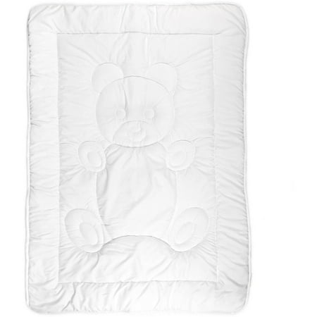 Tadpoles Toddler Comforter: Great down alternative for breathable warmthAvailable in Teddy Bear or Square stitch patterns100 percent polyester microfiber shell200gsm fiber fillMeasures: 40" x 60"Machine wash and dry