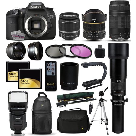Related Product Canon EOS 7D DSLR SLR Digital Camera with 18-55mm IS II + 6.5mm Fisheye + 55-250 IS STM + 650-2600mm Lens + Filters + 128GB Memory + i-TTL Autofocus Flash + Backpack + Case + 70" Tripod + 67" Monopod