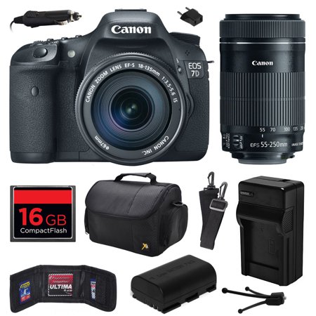 Related Product Canon EOS 7D 18 MP CMOS Digital SLR Camera with 18-135mm f/3.5-5.6 IS UD and EF-S 55-250mm f/4-5.6 IS STM Lens with 16GB Memory, Large Case, Battery, Charger, Memory Card Wallet, Cleaning Kit 3814B016